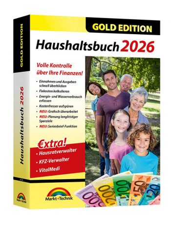 Haushaltsbuch 2026 Volle Kontrolle über Ihre Finanzen 7 Programme in einem Paket Neu: Jetzt inklusive Terminkalender und Adressenverwaltung Neu: Planung langfristiger Sparziele Neu: Serienbrief-Funktion Haushaltsbuch 2026 – Gold Edition Sparen leicht gemacht: Die ultimative Haushaltsbuch-Software 7 Programme in einem Paket  Haushaltsbuch Hausrat- und Inventarverwaltung KFZ-Verwaltung Terminkalender Adressenverwaltung – BriefBox Medizinische Datenverwaltung NEU  Jetzt inklusive Terminkalender […]