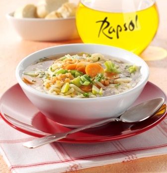 Zubereitung: 1. Möhren schälen und in Scheiben schneiden. Rapsöl in einem großen Topf erhitzen. Möhren darin andünsten. Brühe angießen und aufkochen. Gabelspaghetti zufügen und in der Brühe nach Anweisung al dente kochen. 2....